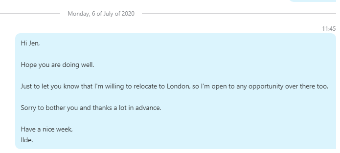 Empiezo a buscar trabajo en el Reino Unido. Más concretamente en Londres. Es la primera vez que lo hago y no tengo mucha idea de por dónde empezar. Lo primero es hacerles saber a los recruiters con los que estoy en contacto que ahora sí estoy interesado en Londres aunque eso implique relocation (mudanza). No nos importa. La situación política y social española no ayuda, más bien todo lo contrario, así que estaremos encantados de salir de aquí.