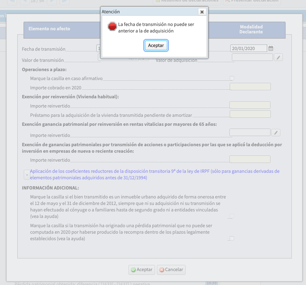 ¿Has puesto cero en el valor de adquisición? ¿Has podido mandar la declaración?